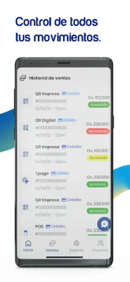 مع App Bancard، يصبح إنجاز المهام اليومية أكثر سلاسة وكفاءة. يمكنك إجراء عمليات بيع فورية وآمنة باستخدام رمز الاستجابة السريعة (QR)، بالإضافة إلى توليد روابط دفع Tpago مخصصة بسهولة فائقة، مما يوسع من قنوات مبيعاتك ويصل إلى قاعدة عملاء أوسع. لا يقتصر الأمر على ذلك؛ فإدارة صلاحيات المستخدمين لفريق عملك أصبحت في متناول يدك، مما يضمن سير العمل بانسيابية تامة وتوزيع المهام بفعالية.
