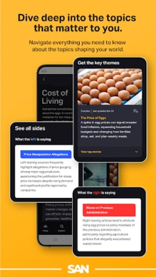 ما يميز SAN حقًا هو التزامه بكشف الروايات التي قد تغفلها وسائل الإعلام التقليدية. من خلال أدواته المبتكرة، يسلط SAN الضوء على الأخبار التي لا تحظى بالتغطية الكافية من المصادر ذات التوجهات المختلفة، سواء كانت يمينية أو يسارية. يتيح لك هذا النهج الفريد رؤية مشهد إخباري أكثر اكتمالًا وتوازنًا، مما يمنحك فهمًا أعمق للقضايا ويساعدك على تكوين منظورك الخاص بناءً على حقائق متعددة الأوجه، بعيدًا عن أي تحيز أحادي.